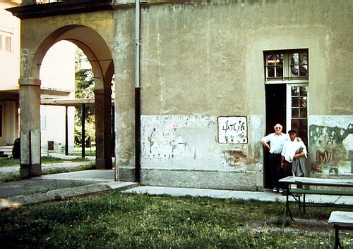 Esterno del famoso Atelier con Amilcare e Cristini e l'artista Luigì